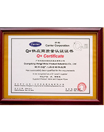 開利供應商質量認證證書